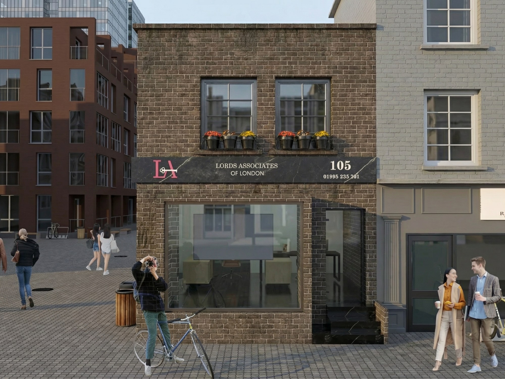 Exterior Design: The exterior design was a careful balance between maintaining the charm and historic character of the building and introducing modern elements that reflect the company’s contemporary approach. The façade features large, clear windows that allow visibility into the office from the street, inviting passersby to engage with the space. I chose to incorporate a clean, minimalist design for the windows and entryway, framed by sleek, black steel accents, giving the space a modern edge while remaining respectful to the surrounding architecture.